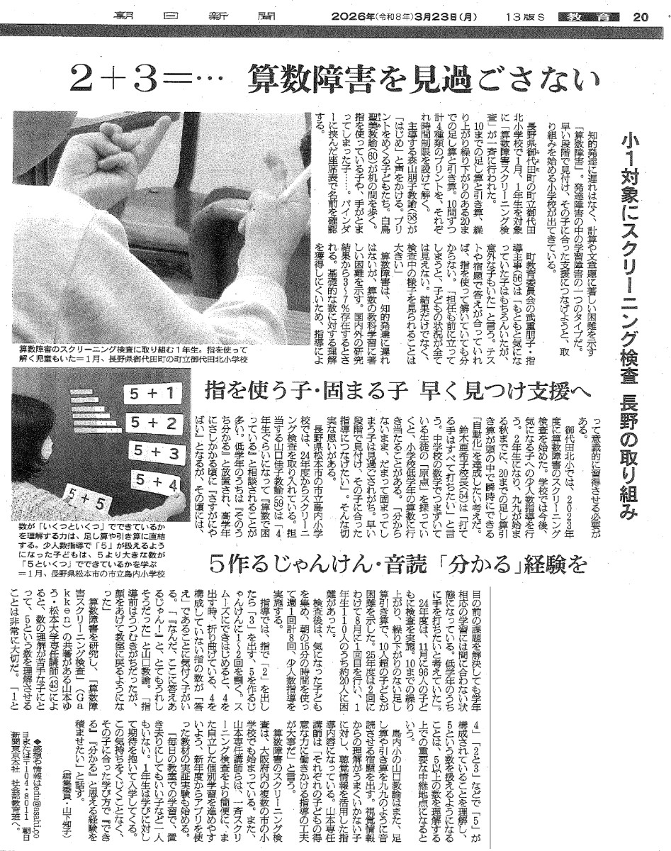 2+3=・・・ 算数障害を見過ごさない